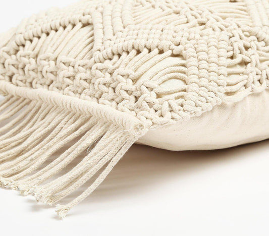 Makramee Fringed Ruudukujuline Padjakate | Diamond Line