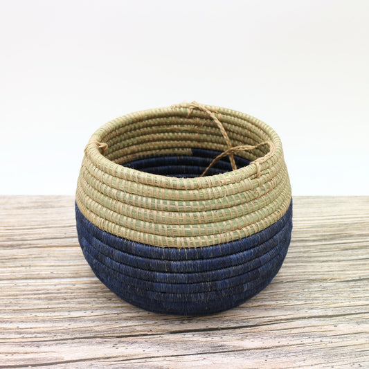 Sisal et herbe sucrée pot suspendu tissé | Bleu/Naturel