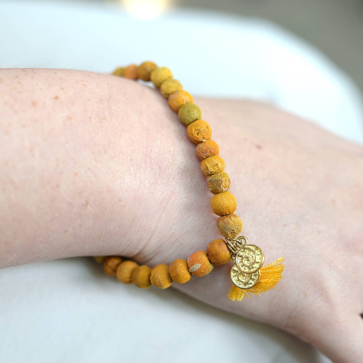 Ši geltona apyrankė, pagaminta iš perdirbtos tekstilės, primena apie mūsų beribį potencialą ateityje. Prisegta prie atributų kortelės, todėl puikiai tinka dovanoti.