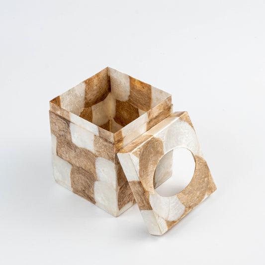 Capiz Tissue Box Houder | Vierkant - Wit/Goud