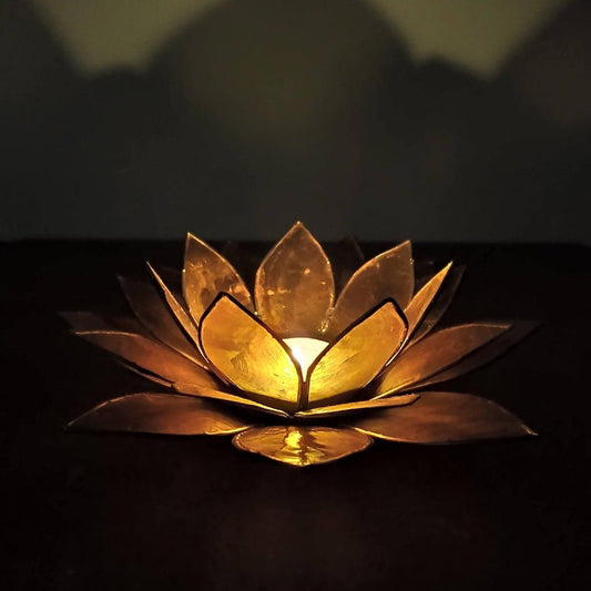Capiz Teelicht Houder | Lotus - Groot - Geel/Natuurlijk