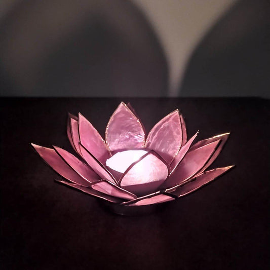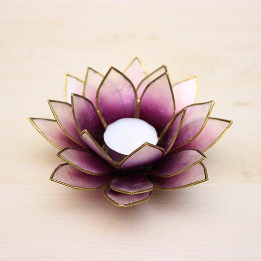 Capiz Teelicht Houder | Lotus - Paars/Natuurlijk