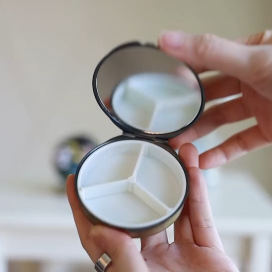 - Detail: Built-in mirror, three compartments, compact and lightweight